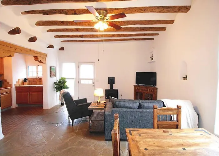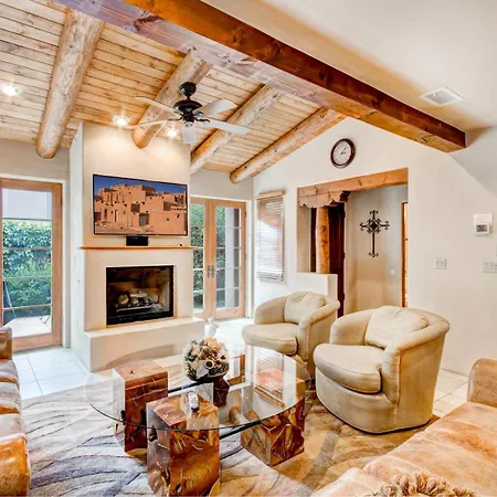 An equipped kitchen is complete with coffee and tea making machines, a kitchenware, and glassware. Blake's Lotaburger serving food and drinks is 7 minutes' walk away. Santa Fe Municipal airport is situated 13 miles from the villa.